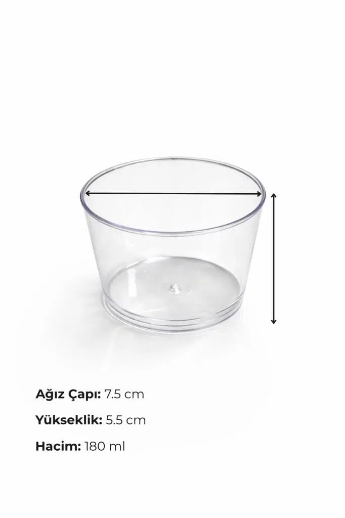 8 cm ağız çapı ve 6 cm yüksekliğiyle pratik boyutlara sahip olan bu mika kase, katmanlı tatlıların her detayını görünür kılar.
