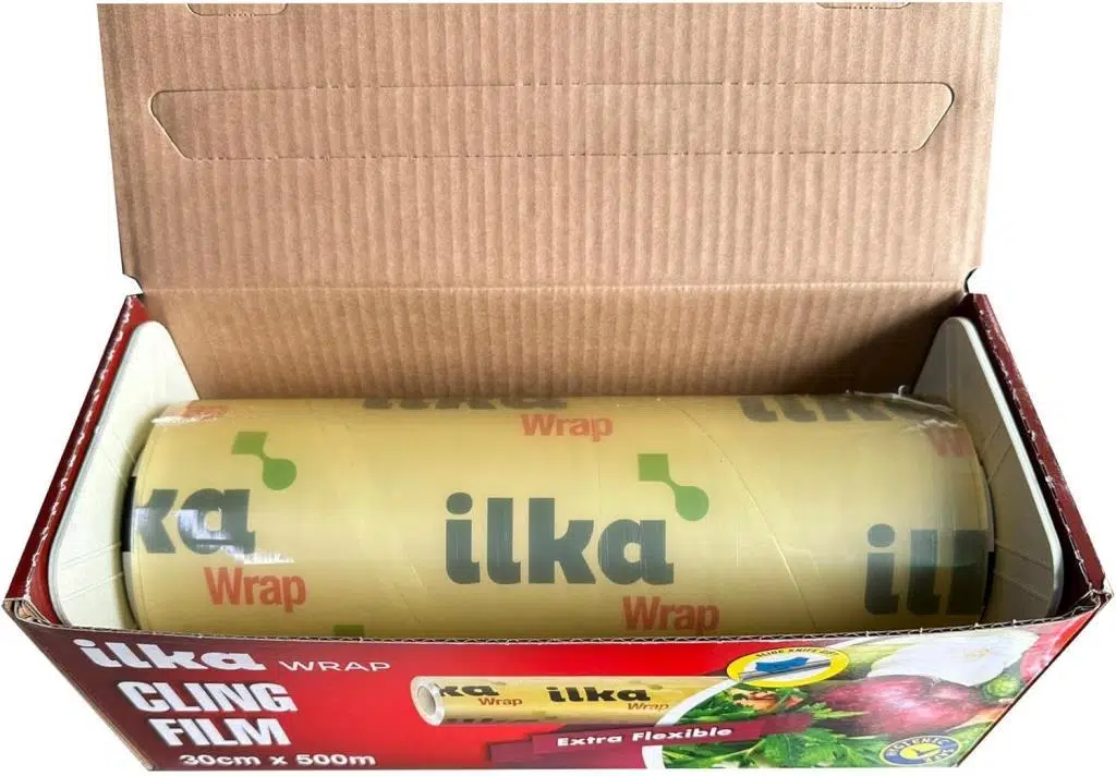 Ilka Wrap Stretch Film which comes into contact with food, is manufactured from Polyvinylchloride.